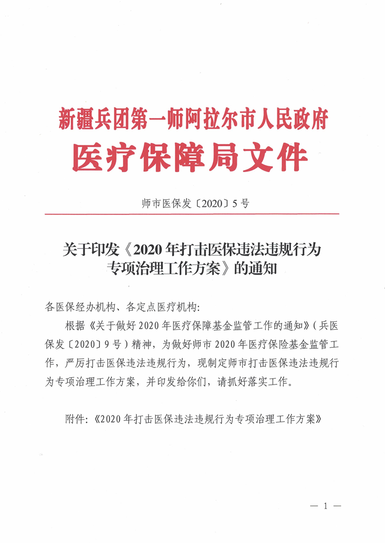 关于印发《2020年打击医保违法违规行为专项治理工作方案》的通知