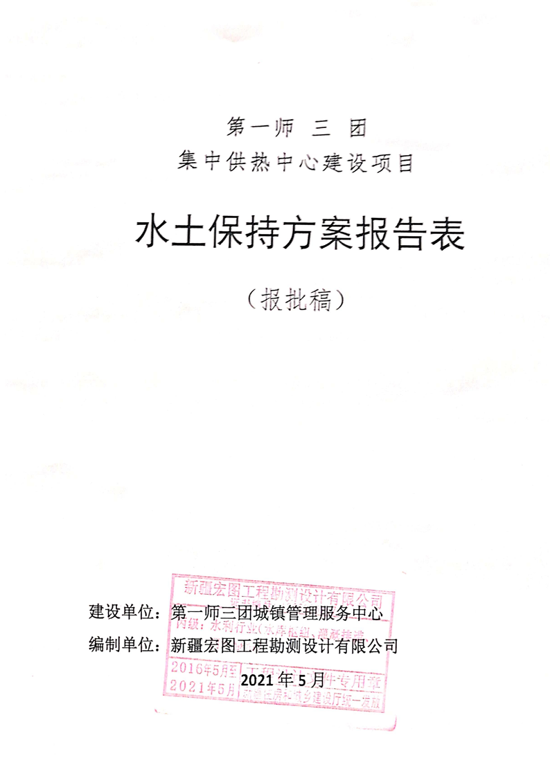 第一师三团集中供热中心建设项目 水土保持方案报告表