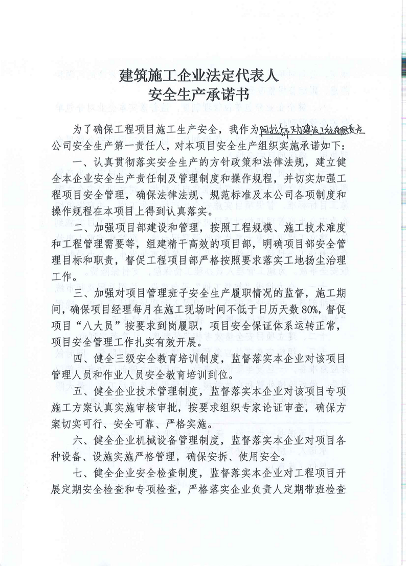 索引号: jsj-2021-00132 发布机构: 住房和城乡建设局 生成日期: 2021-04-16 废止日期: 文 号: 主题分类: 规划计划 关键词: 建筑施工企业法定代表人安全生产承诺书-阿拉尔市天力建设工程有限公司 【打印正文】 【字体:小 大】