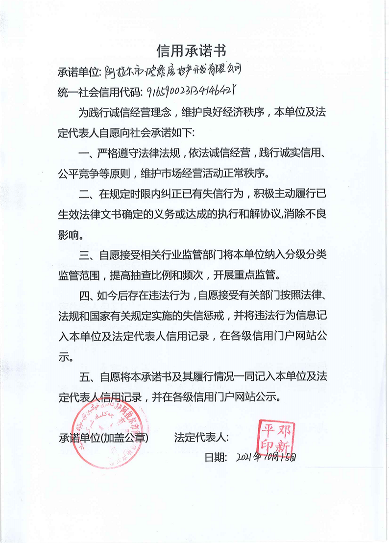 索引号: jsj-2021-00628 发布机构: 住房和城乡建设局 生成日期: 2021-10-22 废止日期: 文 号: 主题分类: 规划计划 关键词: 鸿添房产--信用承诺书 【打印正文】 【字体:小 大】