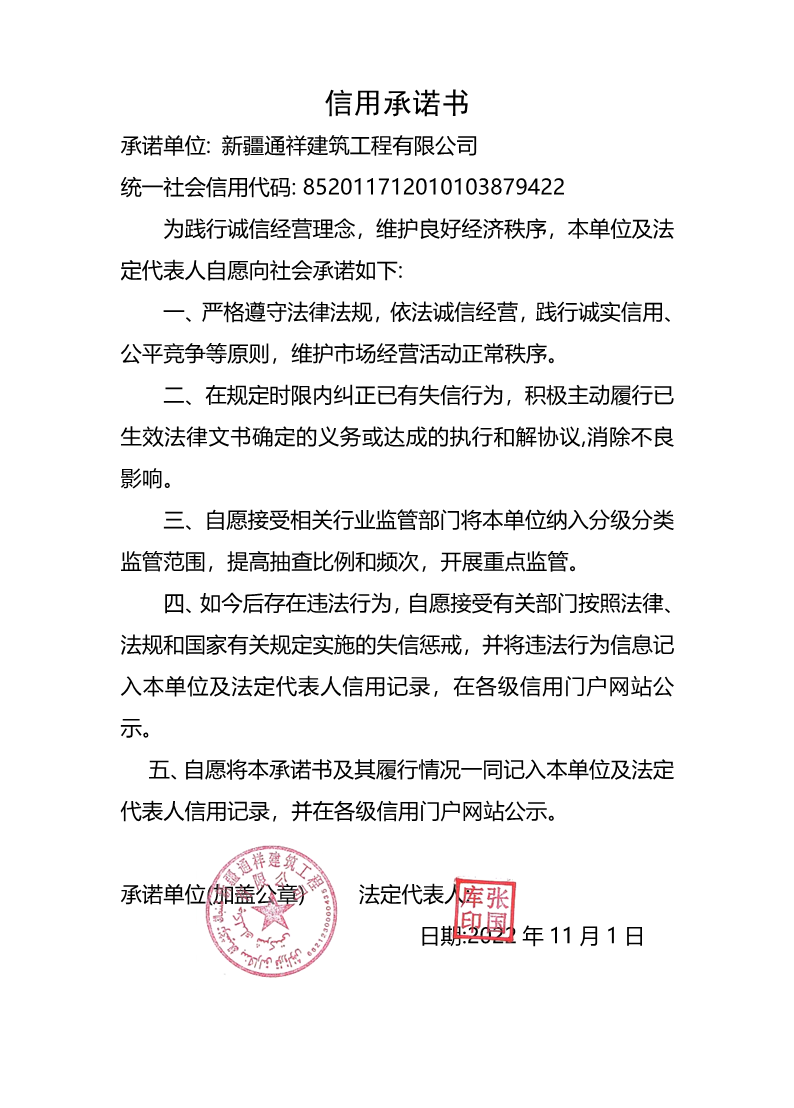 索引号: jsj-2022-00361 发布机构: 住房和城乡建设局 生成日期: 2022-12-12 废止日期: 文 号: 主题分类: 规划计划 关键词: 通祥建司--信用承诺书 【打印正文】 【字体:小 大】