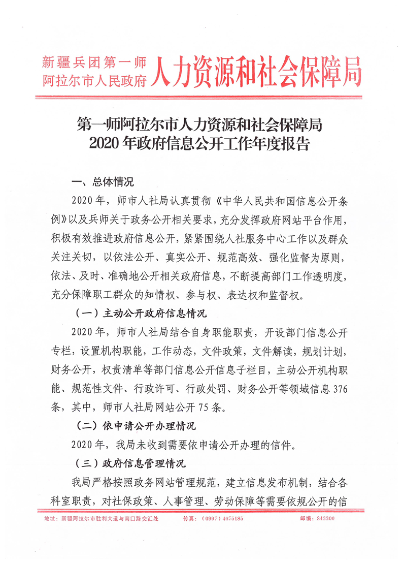 索引号: 000000000-2021-00061 发布机构: 人社局 生成日期: 2021-01-31 废止日期: 文 号: 主题分类: 年度工作报告 关键词: 第一师阿拉尔市人社局2020年政府信息公开工作年度报告 【打印正文】 【字体:小 大】