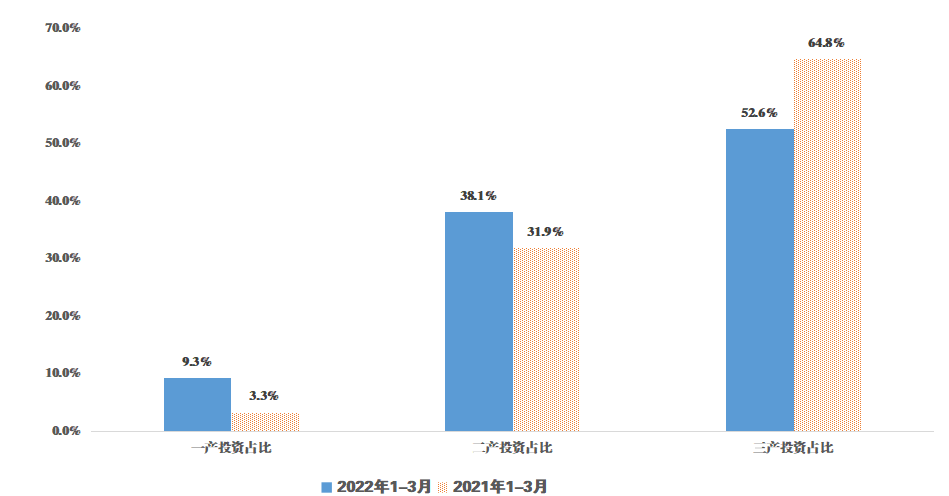 1季度,一产完成投资1.8亿元,同比增长257%,拉动投资增长8.5个百分点;二产完成投资7.3亿元,同比增长50.5%,拉动投资增长16.1个百分点;三产完成投资10.1亿元,同比增长2.4%,拉动投资增长1.6个百分点。