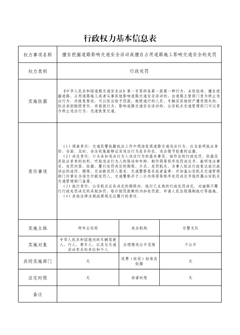 擅自挖掘道路影响交通安全活动或擅自占用道路施工影响交通安全的处罚