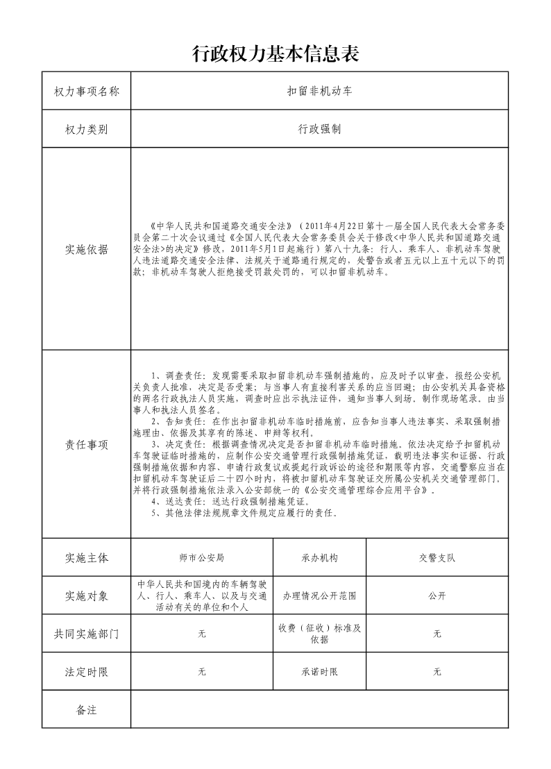 扣留非机动车