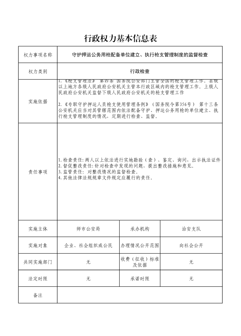 守护押运公务用枪配备单位建立、执行枪支管理制度的监督检查