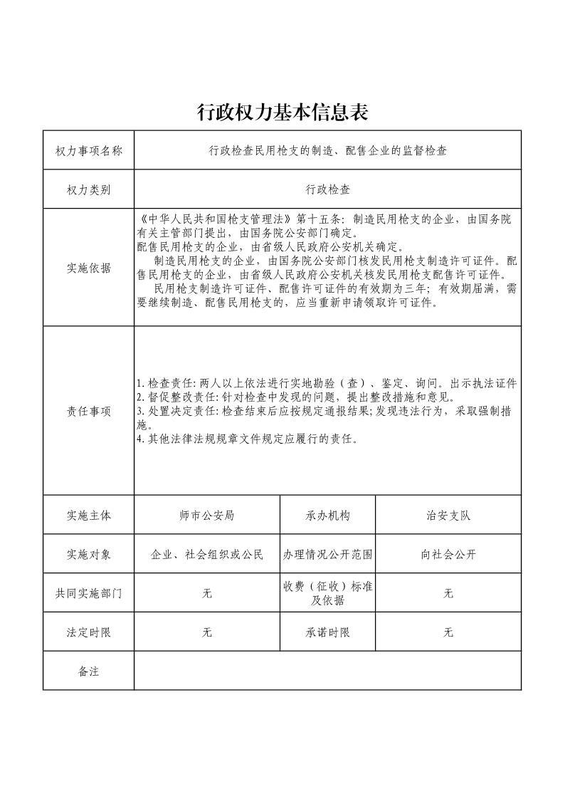 民用枪支的制造、配售企业的监督检查