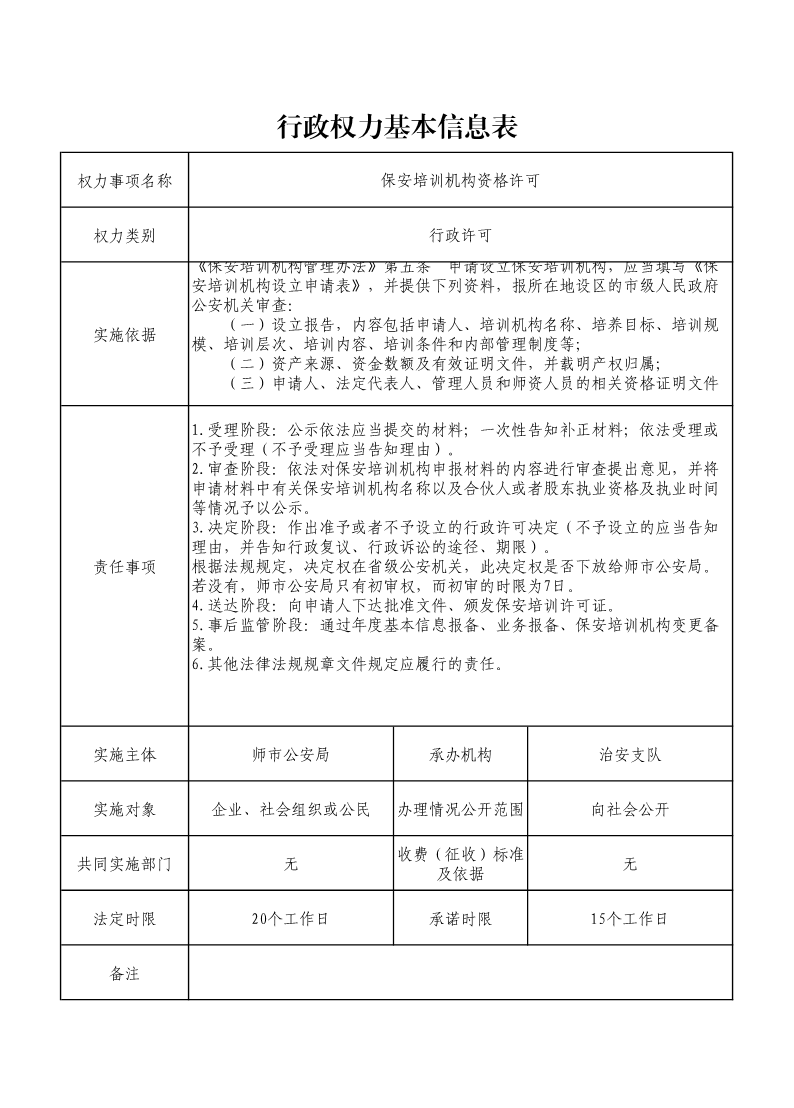 保安培训机构资格许可