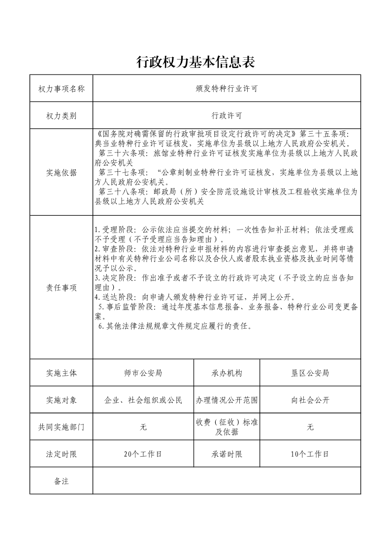 颁发特种行业许可