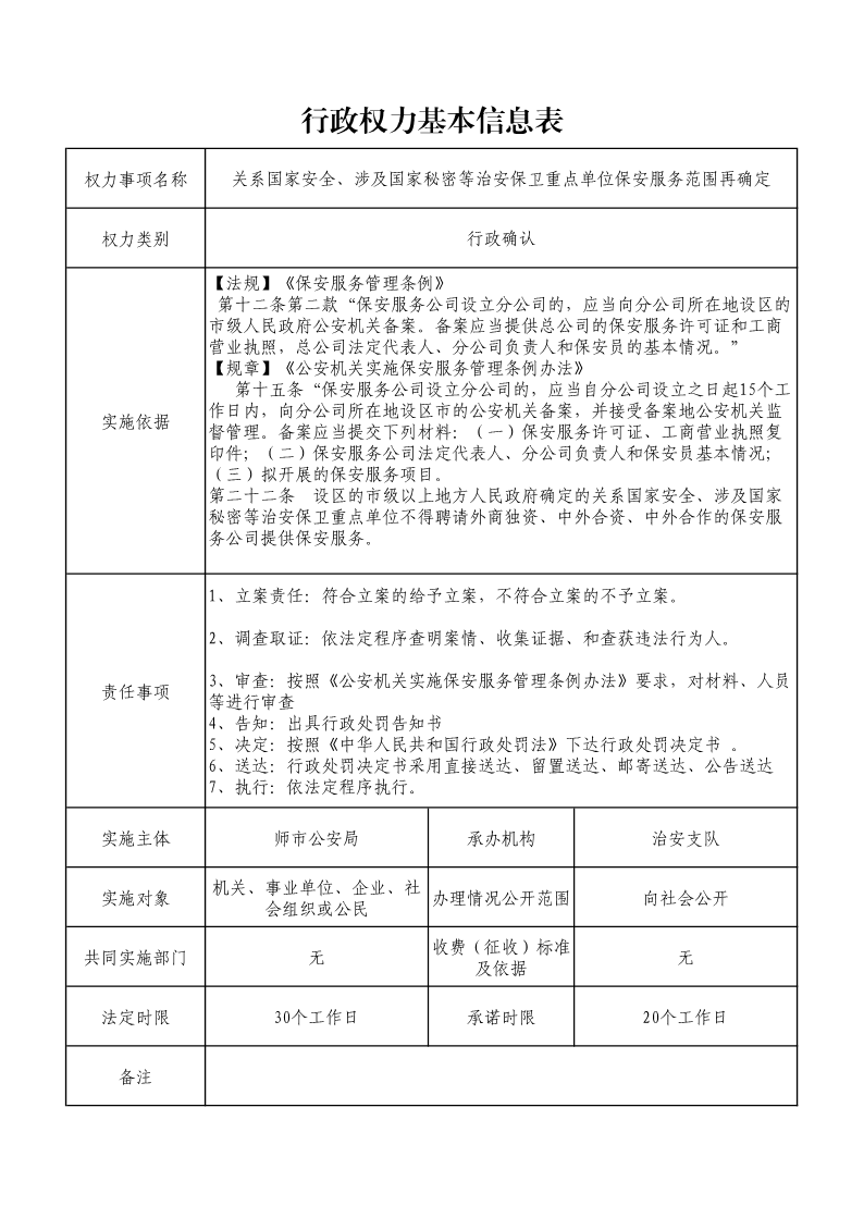 关系国家安全、涉及国家秘密等治安保卫重点单位保安服务范围再确定