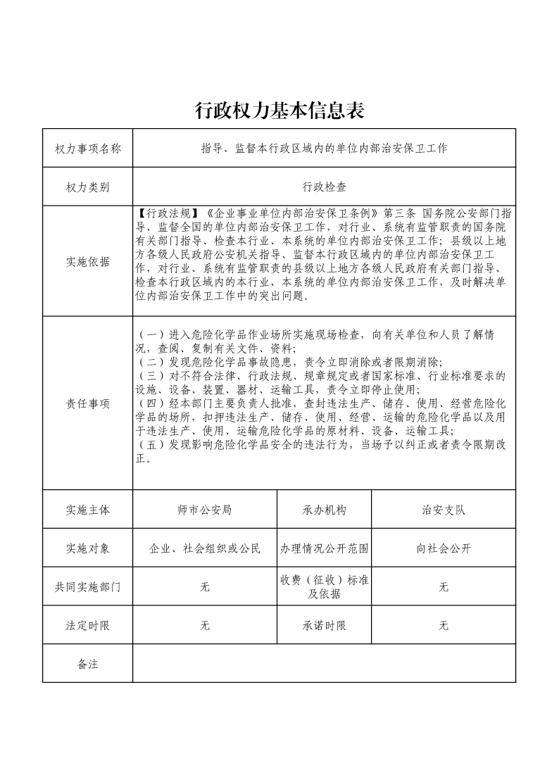 指导、监督本行政区域内的单位内部治安保卫工作