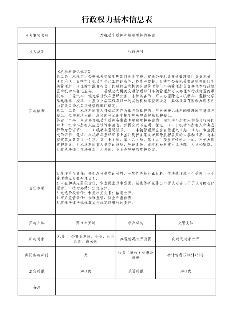 对机动车质押和解除质押的备案