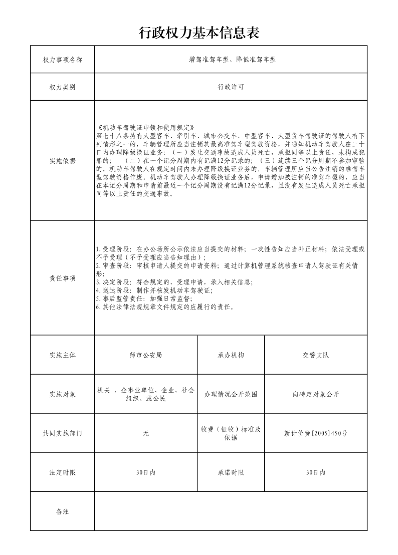 增驾准驾车型、降低准驾车型