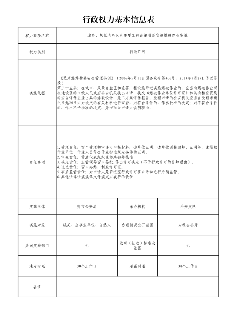 城市、风景名胜区和重要工程设施附近实施爆破作业审批