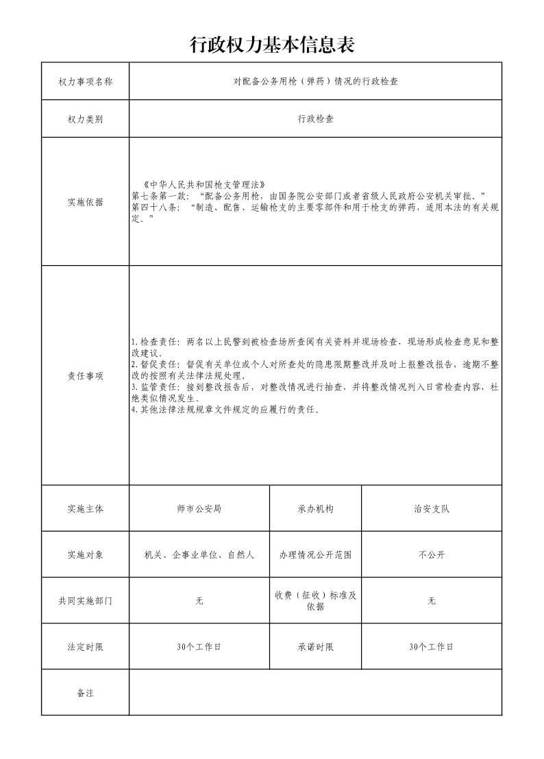 对配备公务用枪(弹药)情况的行政检查