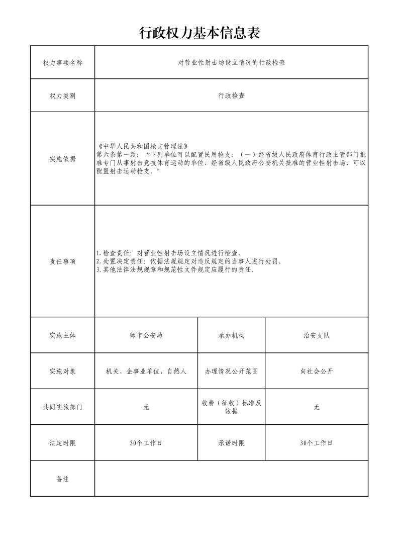 对营业性射击场设立情况的行政检查