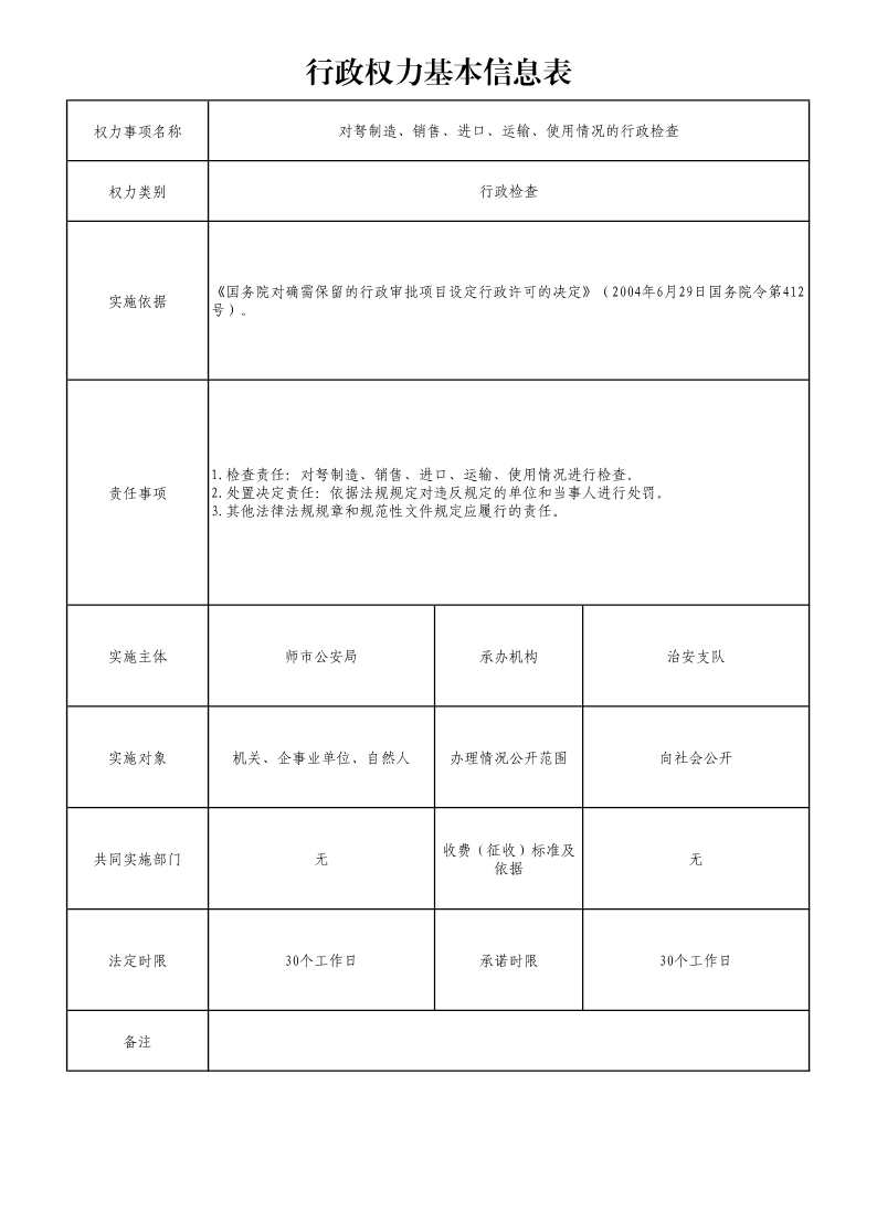 对弩制造、销售、进口、运输、使用情况的行政检查