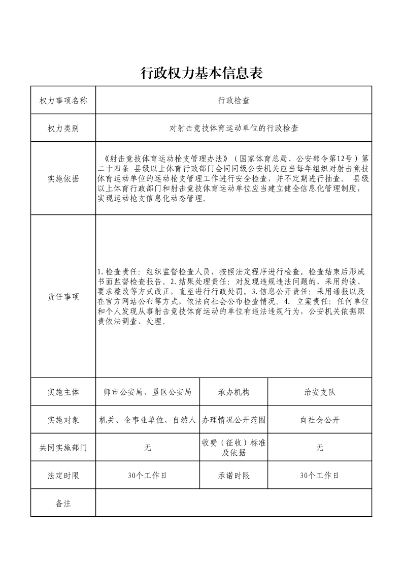对射击竞技体育运动单位的行政检查