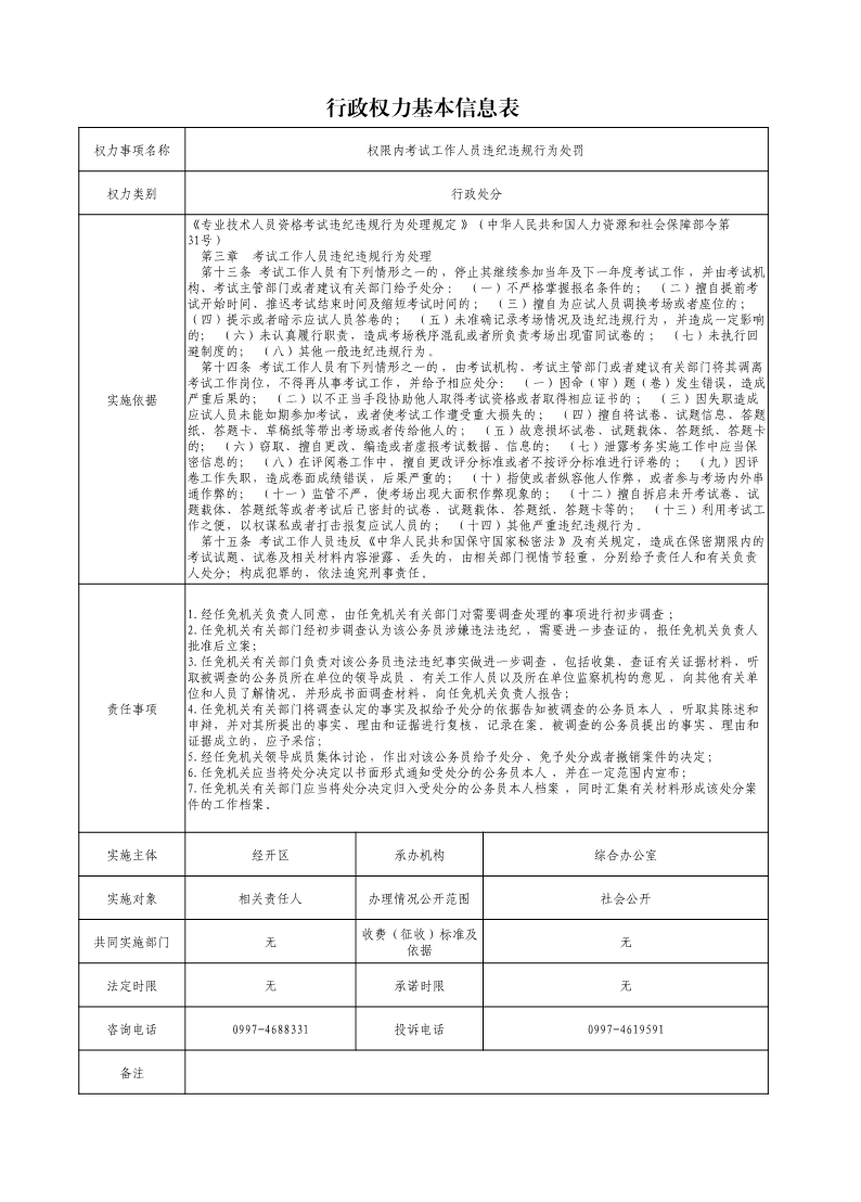 权限内考试工作人员违纪违规行为处罚
