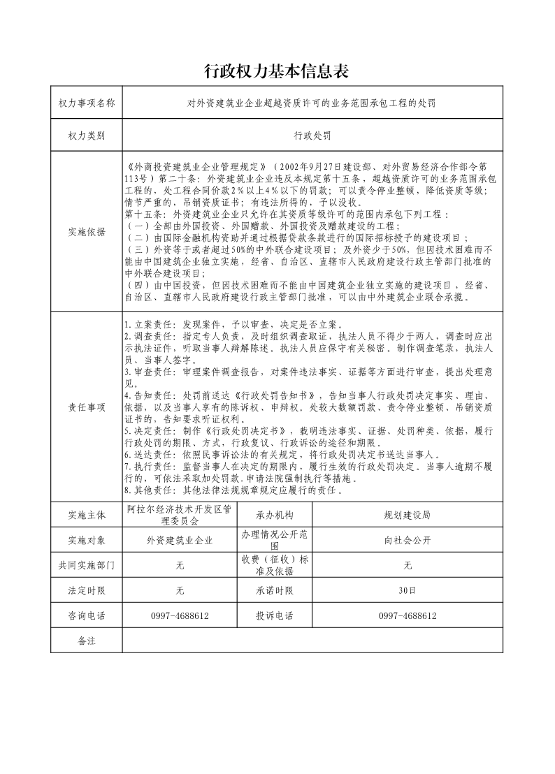 对外资建筑业企业超越资质许可的业务范围承包工程的处罚
