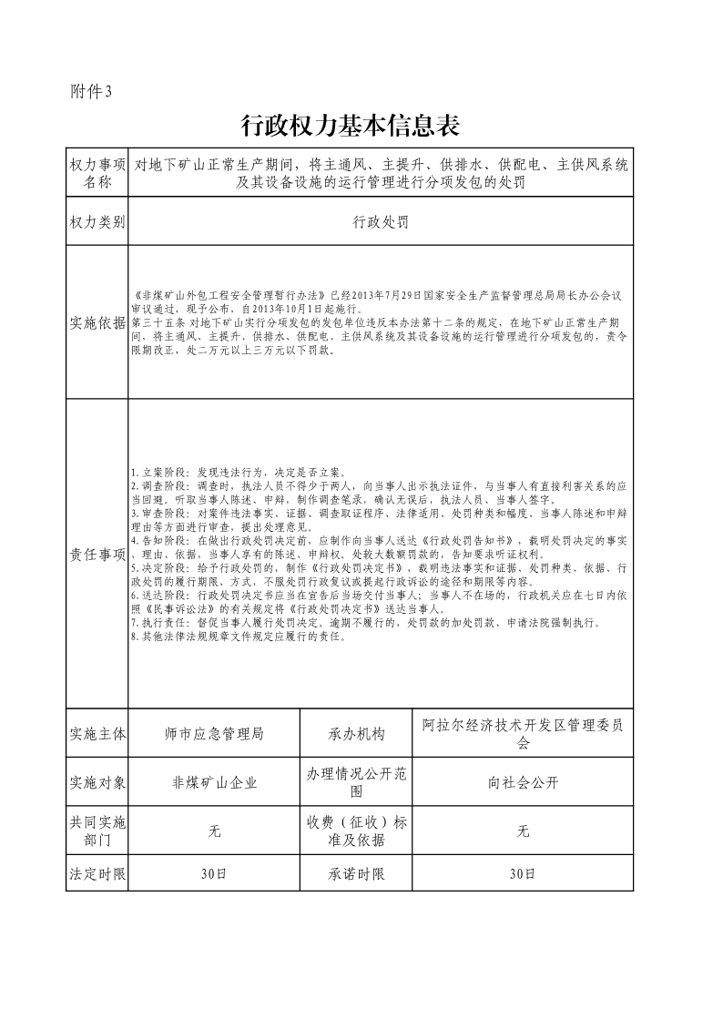 对地下矿山正常生产期间,将主通风、主提升、供排水、供配电、主供风系统及其设备设施的运行管理进行分项发包的处罚