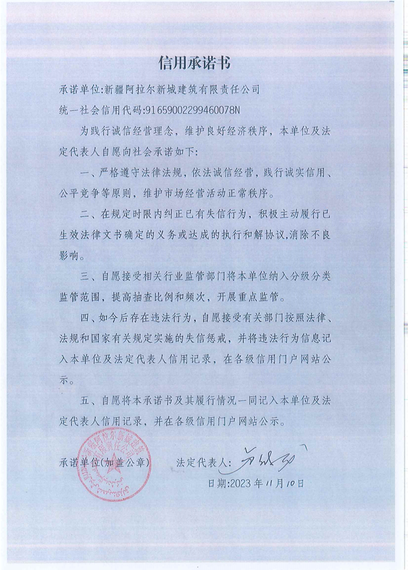 新城建司信用承诺书