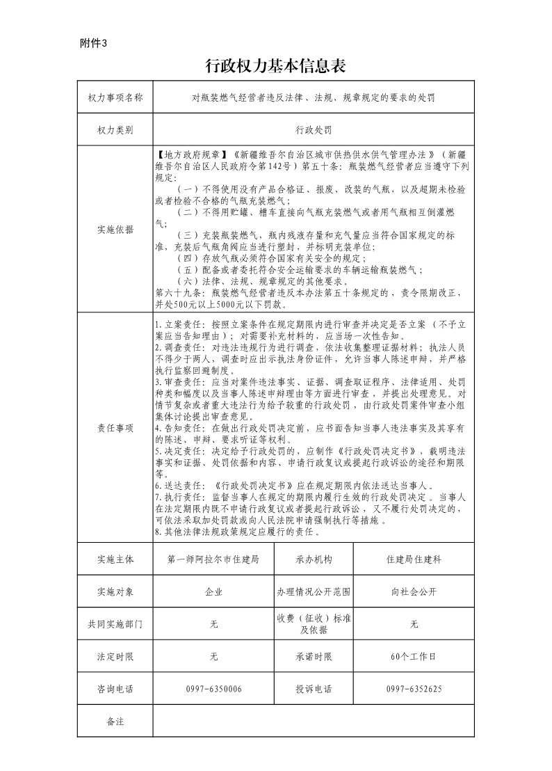 44、对瓶装燃气经营者违反法律、法规、规章规定的要求的处罚