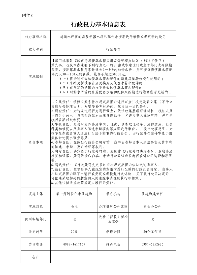 77、对对漏水严重的房屋便器水箱和配件未按期进行维修或者更新的处罚