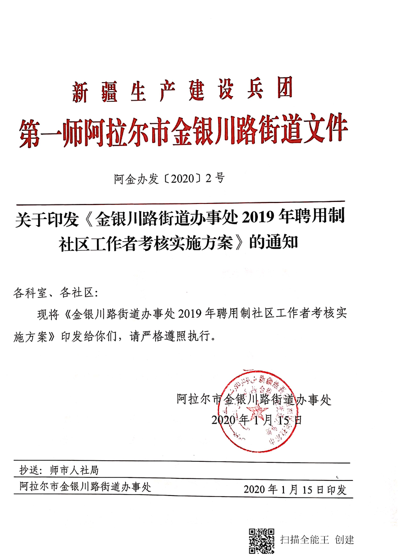 关于印发金银川路街道办事处2019年聘用制社区工作者考核实施方案的通知