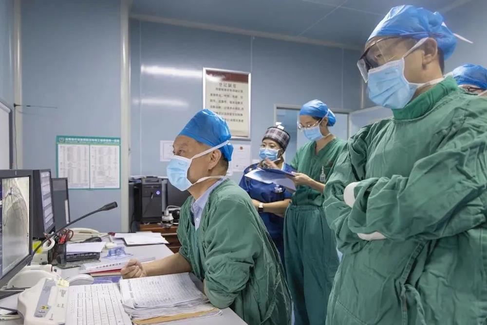 心脏介入手术需要在跳动的心脏上开展操作,对医生的技术要求非常高,手术中存在很多变量,非常考验医护团队的临场应变能力。原本有条不紊的手术操作被突发的室颤打断了2次,茶春喜教授临危不乱,带领医护团队紧急除颤,及时解除了危机,直到手术完成,病人安全返回病房,一众医护人员才敢长舒一口气。像这样的介入手术,茶春喜教授每年要带领团队开展上千台次。