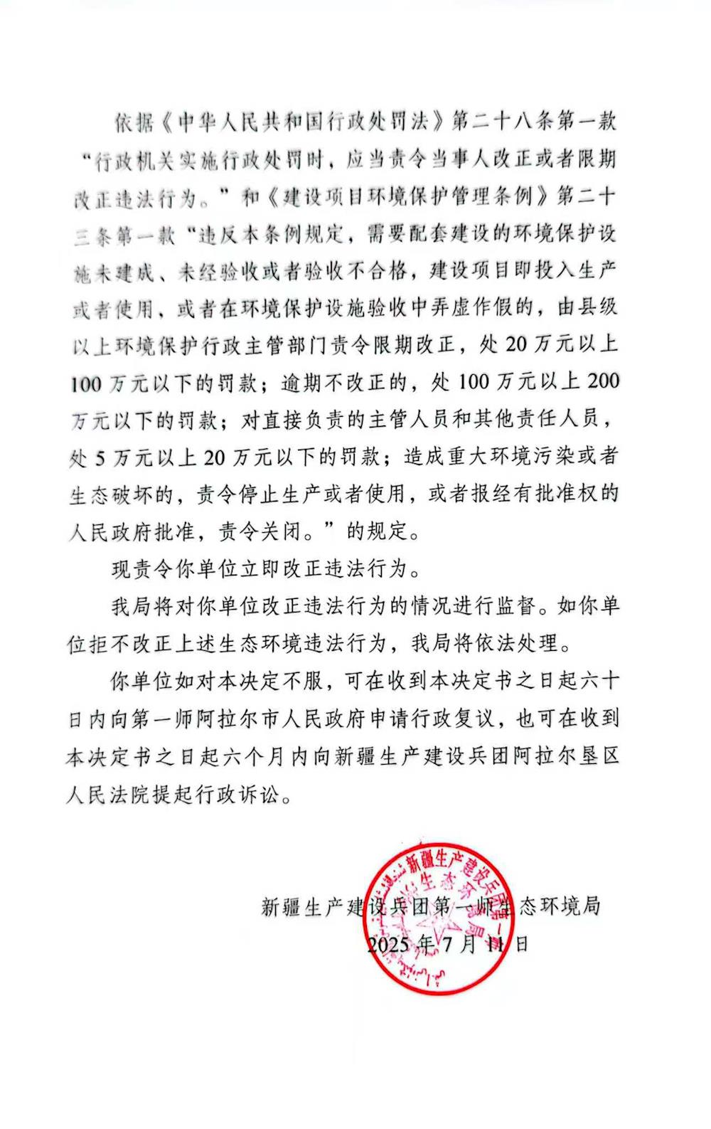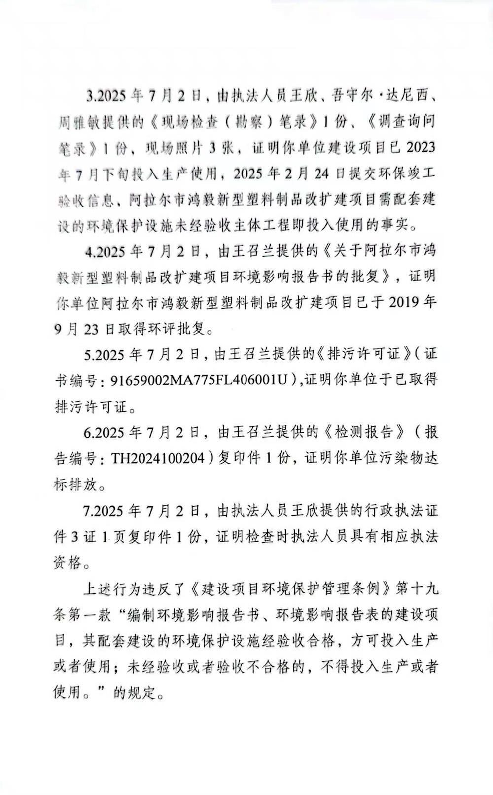 关于阿拉尔市弘毅塑料制品有限公司《责令改正违法行为决定书》21号的公示 来源:生态环境局 发布时间:2025-07-14 12:35:11 浏览次数: 次 【字体:小 大】 终审:生态环境局 【打印正文】
