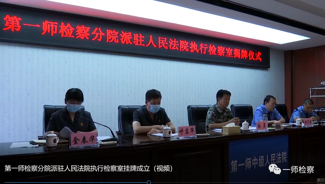 8月5日,第一师检察分院派驻人民法院执行检察室在第一师中级人民法院举行揭牌仪式。师市党委常委、副政委、政法委书记张勇、第一师中级人民法院党组书记、院长呼应军、第一师检察分院党组书记、检察长胡万铭为派驻人民法院执行检察室揭牌。