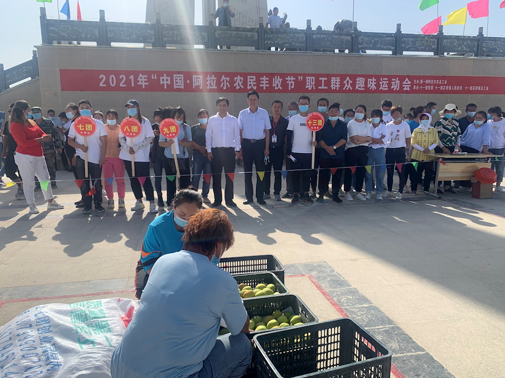 为丰富职工群众文化生活,营造祥和喜庆的节日氛围,凝聚师市广大职工群众力量,进一步展现良好的职工精神风貌。9月16日下午,第一师阿拉尔市总工会在十一团花桥镇隆重举办“中国·阿拉尔农民丰收节”职工群众趣味运动会决赛,来自师市的14个团(镇),240多名运动员进行了7个项目的激烈角逐,全总基层工作部民主管理处处长钱鑫出席了此次活动。