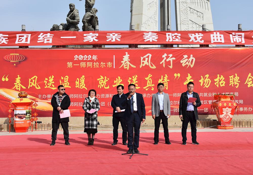 2022年2月15日,第一师阿拉尔市十一团昆岗文化广场举办了“春风送温暖 就业送真情”的春风行动专场招聘会,师市人社局领导、经济开发区领导、团镇领导和园区企业参加。
