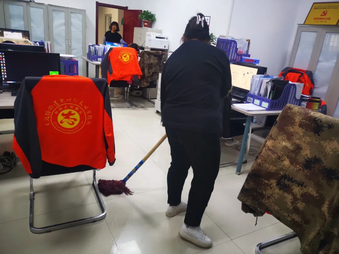活动中,网格员们对社区党群服务中心进行卫生清理,环境消毒,营造干净、整洁、卫生、舒适的办公环境。