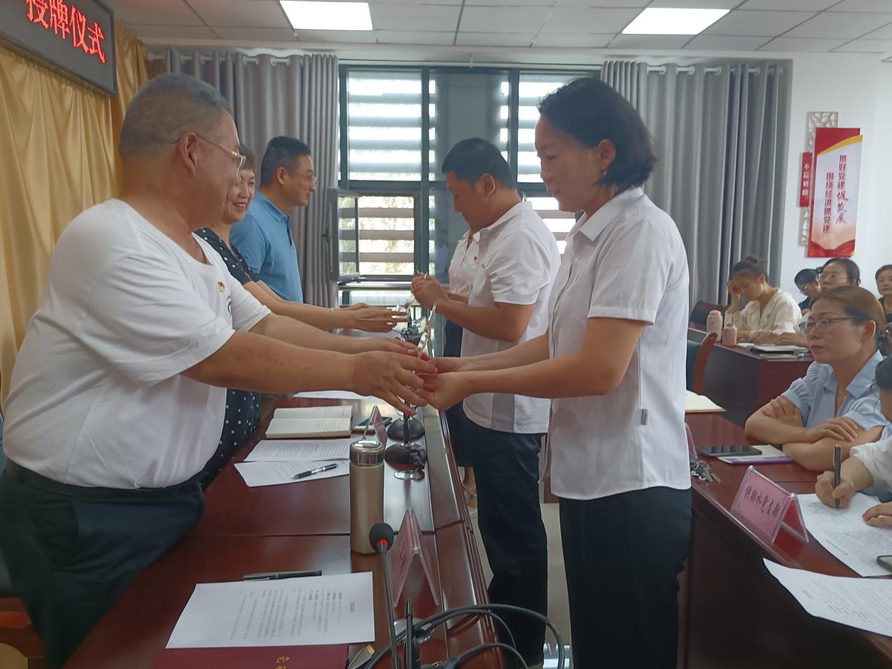 汪芳、张晓锋分别为荣获第二季度“党员先锋岗”荣誉称号的党员授牌。