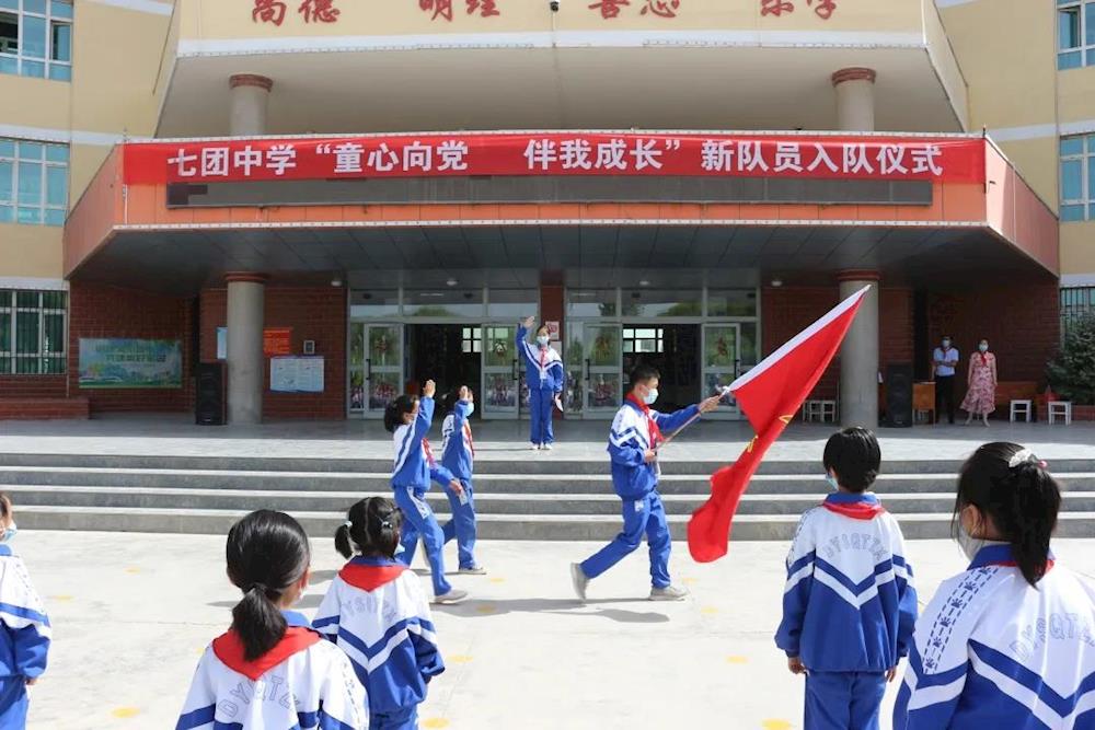 5月28日上午,七团中学举行了“童心向党 伴我成长”新生入队仪式。104名新队员光荣加入中国少年先锋队,为七团中学少年先锋队注入了新鲜血液。
