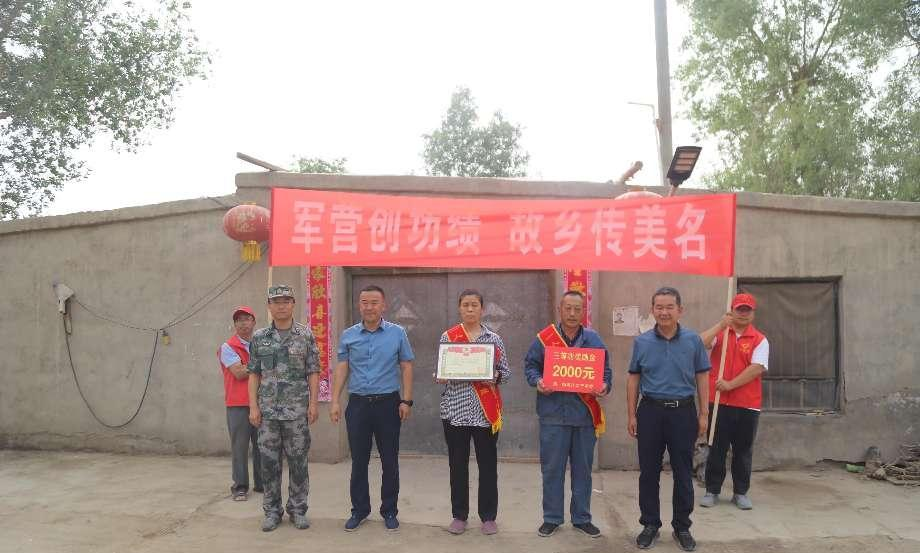 伴随着欢快的锣鼓声,霍志强和韩利峰将荣立三等功的喜报、奖章以及奖励金送到现役军人肖燕青父亲的手上,并与立功军人的父母亲切交谈,详细了解他们的生活情况,感谢他们对国防建设的支持和奉献,感谢他们为部队培养输送优秀人才,同时希望他们一如既往地支持部队工作,让儿子在部队能再创佳绩、再立新功。
