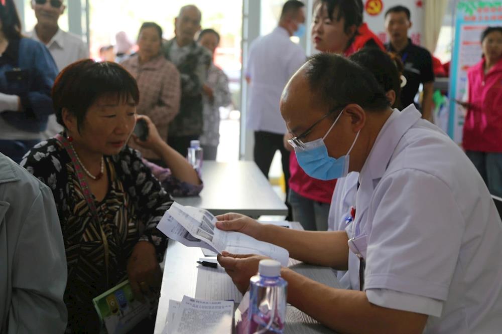 义诊现场,前来咨询问诊的居民络绎不绝,专家们详细诊断,耐心细致地解答居民的问题,为居民对症开方,并给予健康指导。