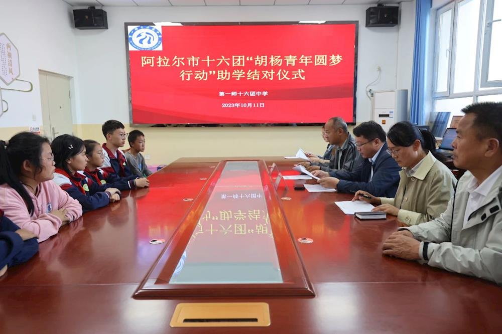 十六团举行阿拉尔市十六团“胡杨青年圆梦行动”助学结对仪式
