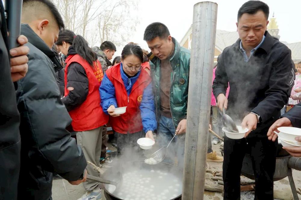 一口大锅,一碗碗热腾腾的汤圆,在荷花公园爱莲堂门口,一群身着红马甲的志愿者在忙碌着。“阿姨,元宵节快乐,来吃碗汤圆暖暖身体吧。”“小朋友,你知道元宵节吗?要不要吃甜甜的汤圆呀”。志愿者们热情流溢地笑容吸引了不少行人驻足,他们将一碗碗热气腾腾的汤圆送到来往群众手中,传递一份份团团圆圆的祝福。新的一年,从一碗甜甜的汤圆开始福气满满的生活!