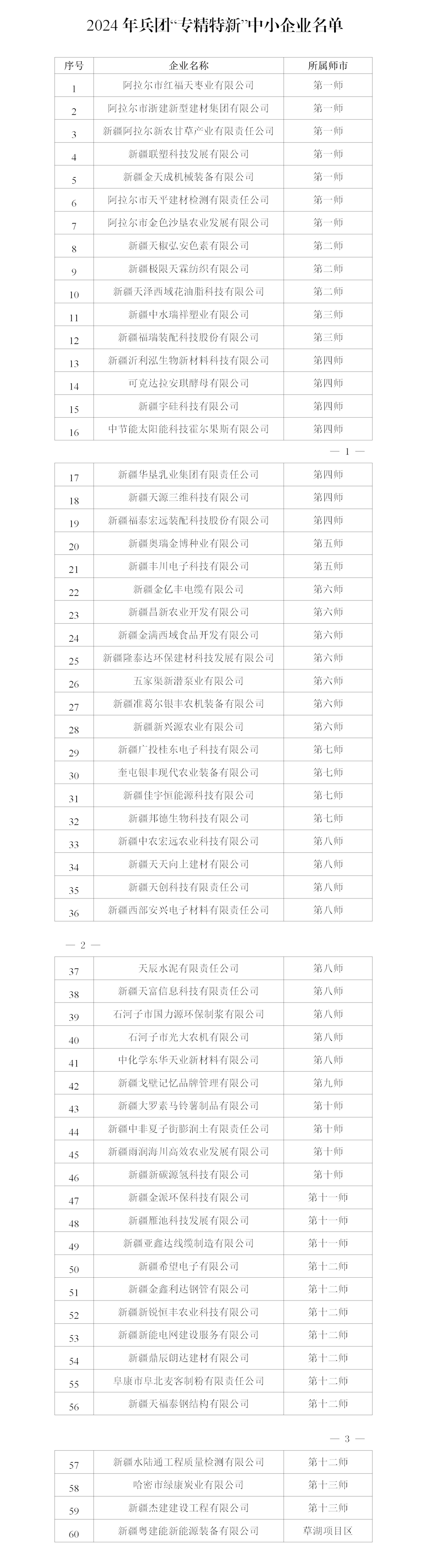 2024年兵团“专精特新”中小企业名单