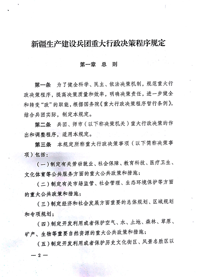 新疆生产建设兵团重大行政决策程序规定