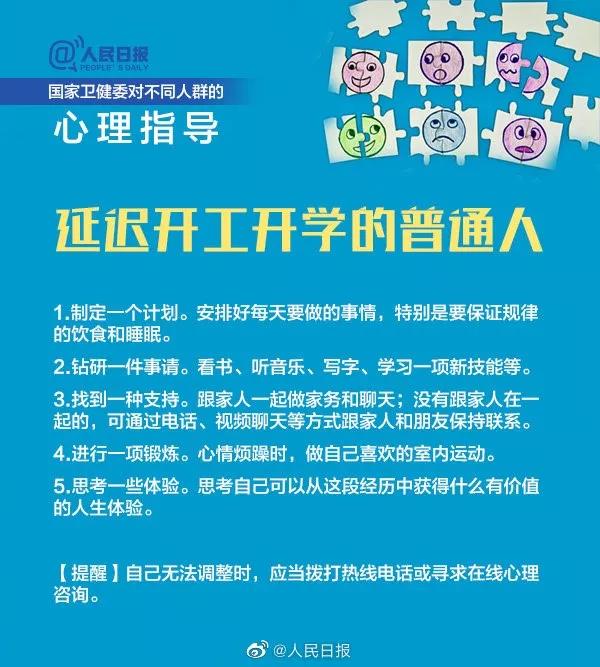 如何缓解疫情焦虑?请看国家卫健委疫情心理疏导指南→ 来源: 发布时间:2020-08-17 16:45:45 浏览次数: 次 【字体:小 大】 如何缓解疫情焦虑?尤其是病患及其家属、延迟开工开学的普通人、医护民警等一线工作人员、必须外出的人、孩子及家长……请看国家卫健委疫情心理疏导指南↓↓ 终审:疫情防控指挥部 【打印正文】