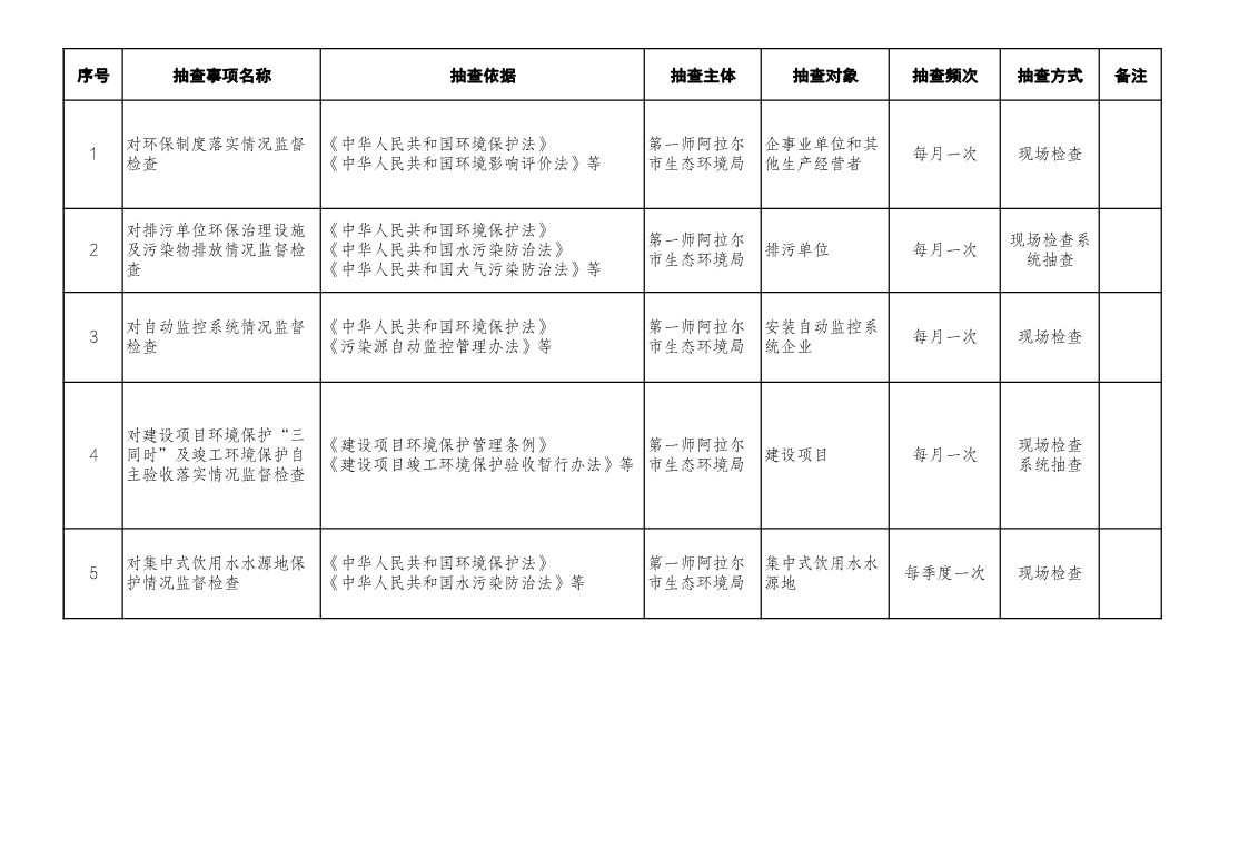 第一师阿拉尔市生态环境局随机抽查事项清单