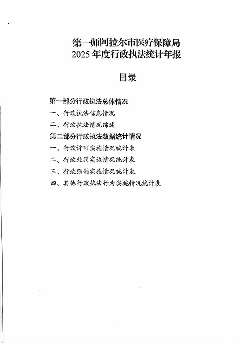 第一师阿拉尔市医疗保障局2025年度行政执法统计年报