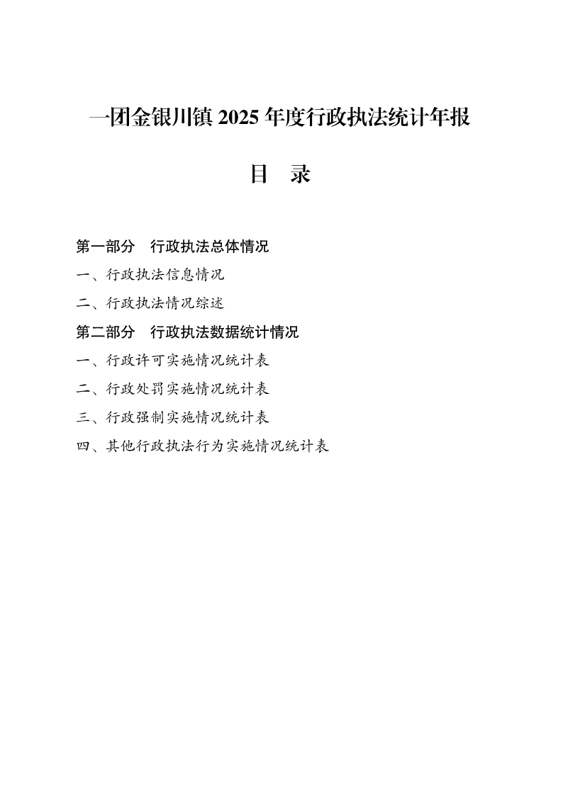 一团金银川镇2025年度行政执法统计年报